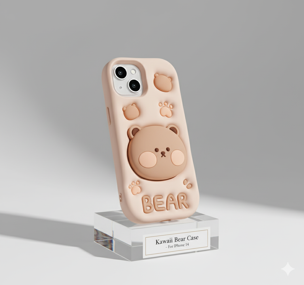 Cute 3D Bear Silicone Phone Case – Soft & Protective Cover